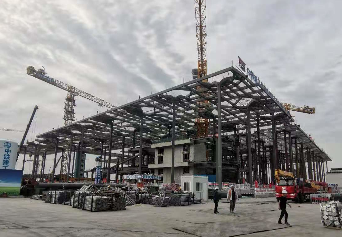 2021年6月8日上午,隨著第四區(qū)鋼結(jié)構(gòu)屋蓋被提升就位,位于城市綠心森林公園西北部的城市副中心圖書館項(xiàng)目實(shí)現(xiàn)結(jié)構(gòu)封頂。從高空俯瞰,圖書館撐起一個(gè)由144片“銀杏葉”組成的“森林傘蓋”。圖書館的設(shè)計(jì)理念源于中國(guó)傳統(tǒng)文化符號(hào)“赤印”,造型別致,整個(gè)項(xiàng)目安裝144根葉片鋼柱,每根鋼柱未來(lái)都將被裝飾成“樹干”,屋頂由144片形如銀杏葉片的鋼結(jié)構(gòu)拼接而成,猶如傘蓋,為市民營(yíng)造出置身森林之感,因此圖書館又名“森林書苑”。整個(gè)屋蓋采用整體提升技術(shù),先在地面將屋蓋鋼結(jié)構(gòu)拼裝好,然后通過液壓系統(tǒng)將屋蓋整體抬起,后與圖書館柱頂對(duì)接。由于屋蓋鋼結(jié)構(gòu)跨度大、噸位重,因此整體屋蓋被分為4個(gè)區(qū)域分區(qū)進(jìn)行提升。區(qū)域有38個(gè)葉片,面積達(dá)7400平方米,提升重為1400噸,總共提升重量為4185噸。