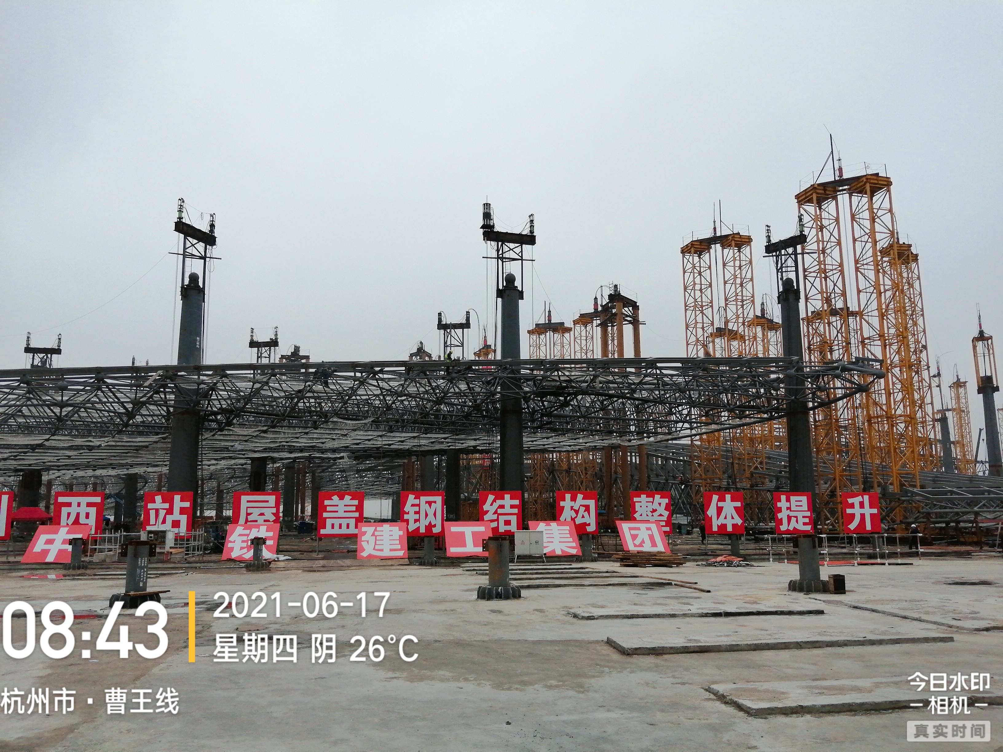 2021年6月20日上午,隨著鋼結(jié)構(gòu)Ⅱ標(biāo)屋蓋提升就位,杭州西站鋼結(jié)構(gòu)屋蓋為實(shí)現(xiàn)月底全部封頂打下堅(jiān)實(shí)基礎(chǔ)。杭州西站大屋面展開總面積約77920㎡,其中鋁鎂錳金屬屋面區(qū)域約65370㎡,玻璃采光天窗區(qū)域約12550㎡,中部天窗略呈星形,四片相對獨(dú)立的金屬屋面形如云朵簇?fù)碓趥?cè)。設(shè)計(jì)著意