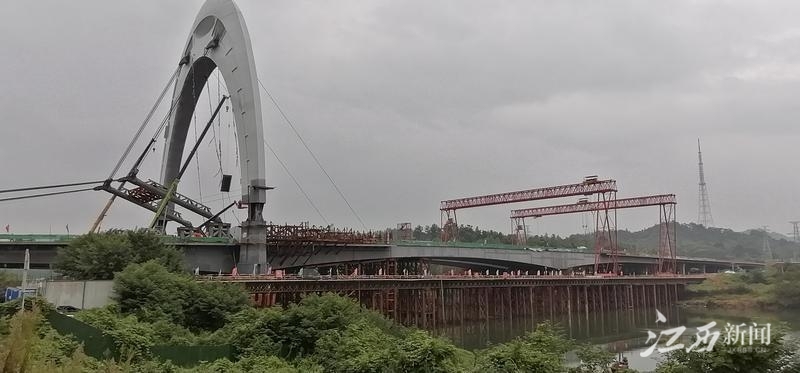 2021年8月11日,上饒市稼軒大橋主橋鋼塔完成了節(jié)點性工序—主塔90°豎轉(zhuǎn),轉(zhuǎn)體施工由上海同新機電控制技術(shù)有限公司負責完成。稼軒大橋鋼主塔采用漢玉映霞造型,“臥式拼裝,整休豎轉(zhuǎn)” 的施工方案,塔高78米,轉(zhuǎn)體塔身58米,重量666噸,主塔90度豎轉(zhuǎn)鋼箱梁大橋。稼軒大橋總投資約5.6億元,是上饒市信州區(qū)城東片區(qū)重要的跨信江南北向聯(lián)系通道,北起五三東大道,南至東岳路聯(lián)絡道,全線長1037.714m,其中橋梁長608米,寬40.5米,雙向六車道,建成后將完善城市骨架路網(wǎng),大大緩解城市擁堵。