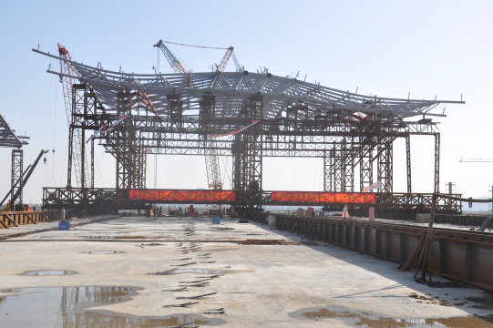 南京祿口機(jī)場屋面網(wǎng)架分塊滑移模型 南京祿口機(jī)場屋面網(wǎng)架分塊滑移現(xiàn)場