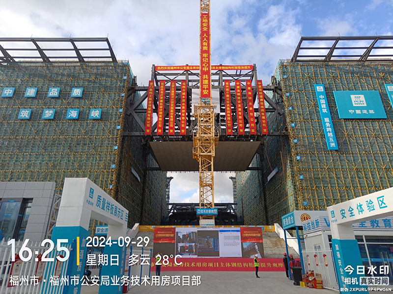 9月29日上午,通過(guò)全自動(dòng)化提升作業(yè),歷時(shí)6小時(shí),重達(dá)1500噸的福州公安局業(yè)務(wù)用房南側(cè)主體鋼桁架隨著8臺(tái)350噸提升油缸同步作業(yè)成功提升到45米的高度。本次提升的主體鋼結(jié)構(gòu)大跨度桁架主要分布在地上結(jié)構(gòu)的F7~F10層。其中,桁架層高度為36米,整體提升高度至45米(從地面提升至最高點(diǎn)),最大跨度為42米。項(xiàng)目團(tuán)隊(duì)對(duì)桁架結(jié)構(gòu)開展專項(xiàng)分析和反復(fù)調(diào)研論證,克服了施工場(chǎng)地狹窄、吊裝工況復(fù)雜、重型多層、超長(zhǎng)超重、鋼構(gòu)件量大等眾多不利因素,采用地面原位拼裝、整體液壓同步提升技術(shù),在確保桁架整體提升過(guò)程的安全性和穩(wěn)定性的同時(shí),也大大縮短了施工周期,降低了材料和能源消耗,助力綠色低碳發(fā)展。