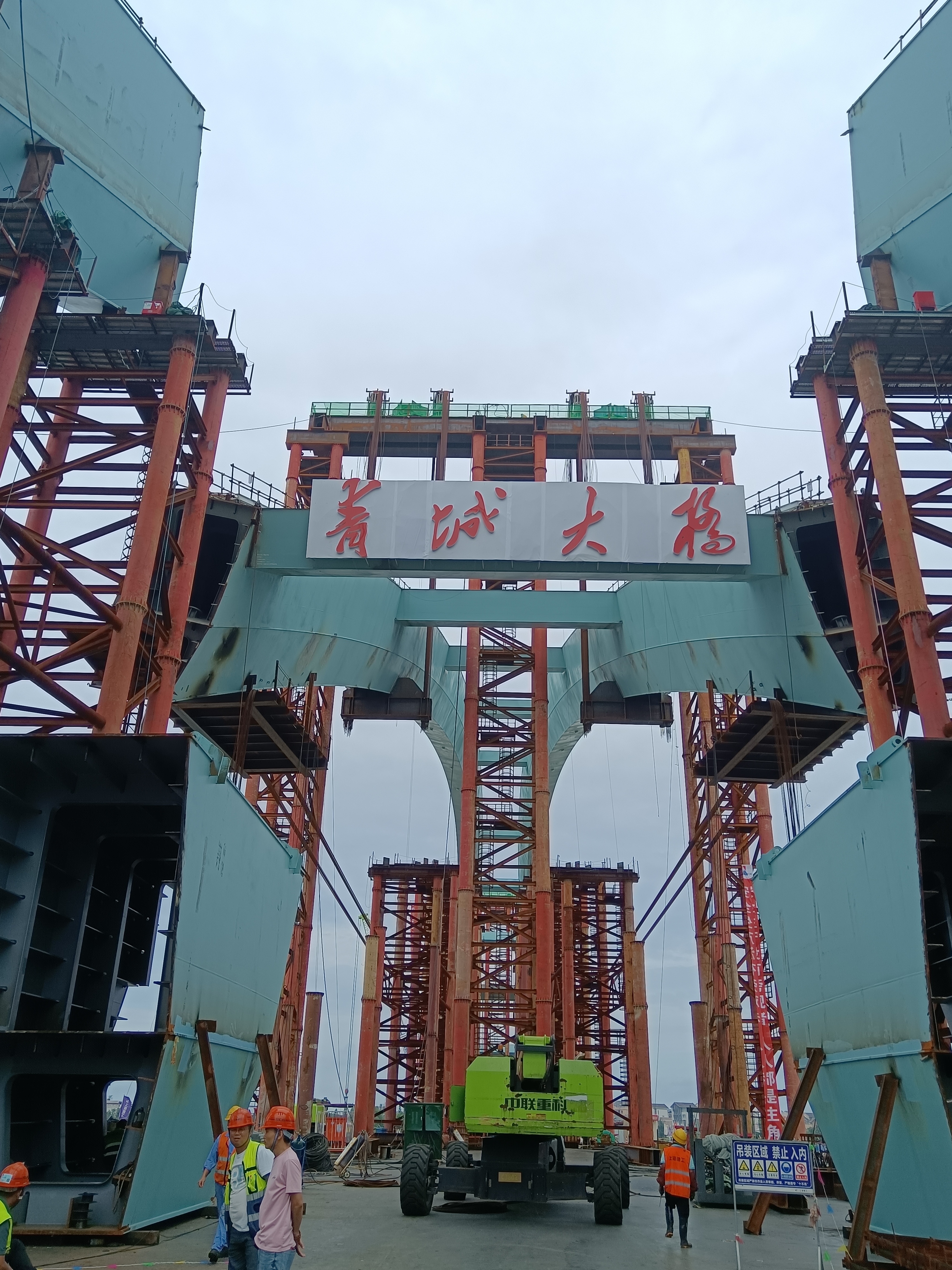2025年7月7日,隨著都江堰青城大橋鋼拱肋提升精確合龍就位。青城大橋自2025年7月5日鋼拱肋提升加載脫架,歷時12個小時,鋼拱肋順利提升就位,標(biāo)志著青城大橋主體結(jié)構(gòu)進(jìn)入合攏段安裝焊接階段。青城大橋重建橋梁結(jié)構(gòu)為系桿提籃拱橋,拱肋矢高61米,橋梁全長353.3m,提升段跨距211m,提升高度約25.5m,提升重量達(dá)到4500t。鋼拱肋采用“橋面低位臥拼+整體提升”施工工藝。通過施工方案優(yōu)化整合,工藝創(chuàng)新,結(jié)構(gòu)模塊化施工建造,現(xiàn)場流水線作業(yè),鋼拱肋順利提升就位。