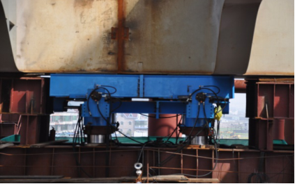 同步點(diǎn)數(shù):22點(diǎn) 設(shè)備使用:22臺(tái)1800噸頂推設(shè)備、21臺(tái)液壓泵站、2套控制系統(tǒng)