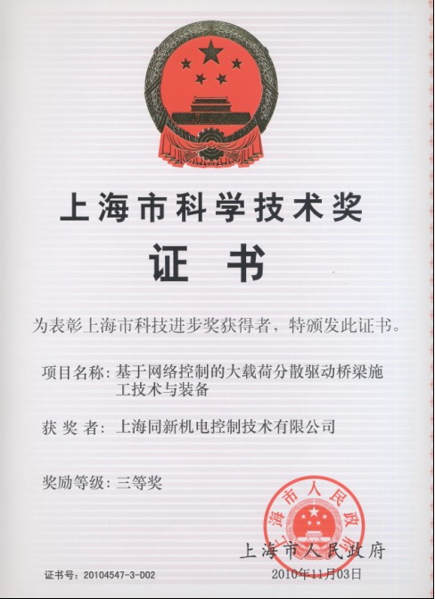 上海市科學(xué)技術(shù)三等獎(jiǎng)