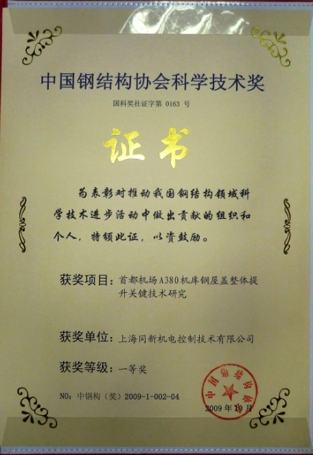 鋼結(jié)構(gòu)協(xié)會(huì)科學(xué)技術(shù)一等獎(jiǎng)