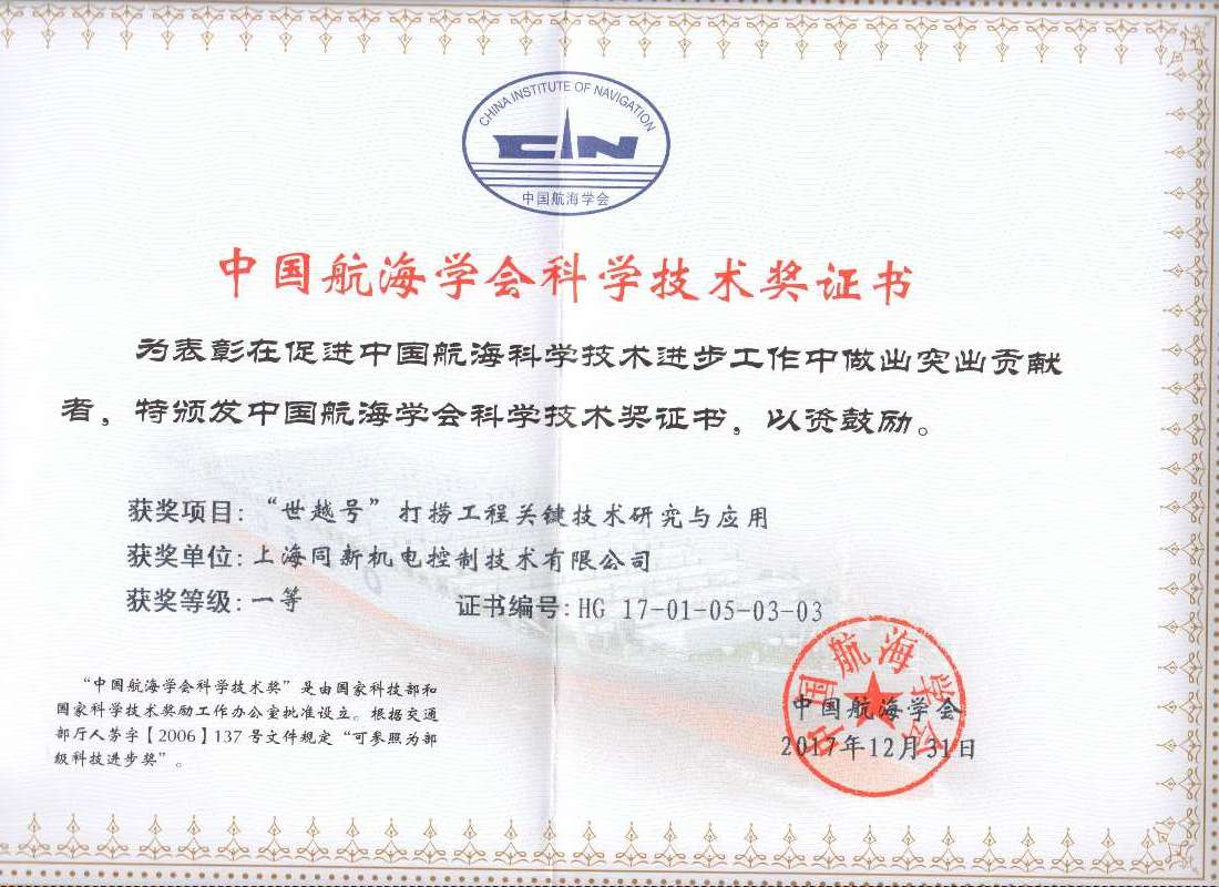 中國航海學(xué)會科學(xué)技術(shù)一等獎