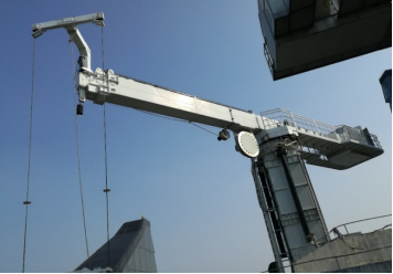 該臂架懸掛吊籃,使吊籃轉(zhuǎn)出或轉(zhuǎn)入女兒墻。可保證工作的可靠和安全性。
