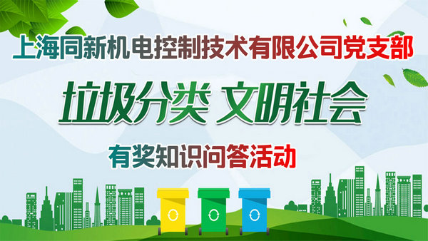 上海同新機(jī)電控制技術(shù)有限公司黨支部 “垃圾分類,文明社會”義務(wù)宣傳活動 為了推廣垃圾分類理念,增強(qiáng)廣大職工對垃圾分類知識的了解,養(yǎng)成良好的垃圾分類習(xí)慣, 2019年11月5號中午,同新機(jī)電黨支部在公司舉辦了“垃圾分類,...